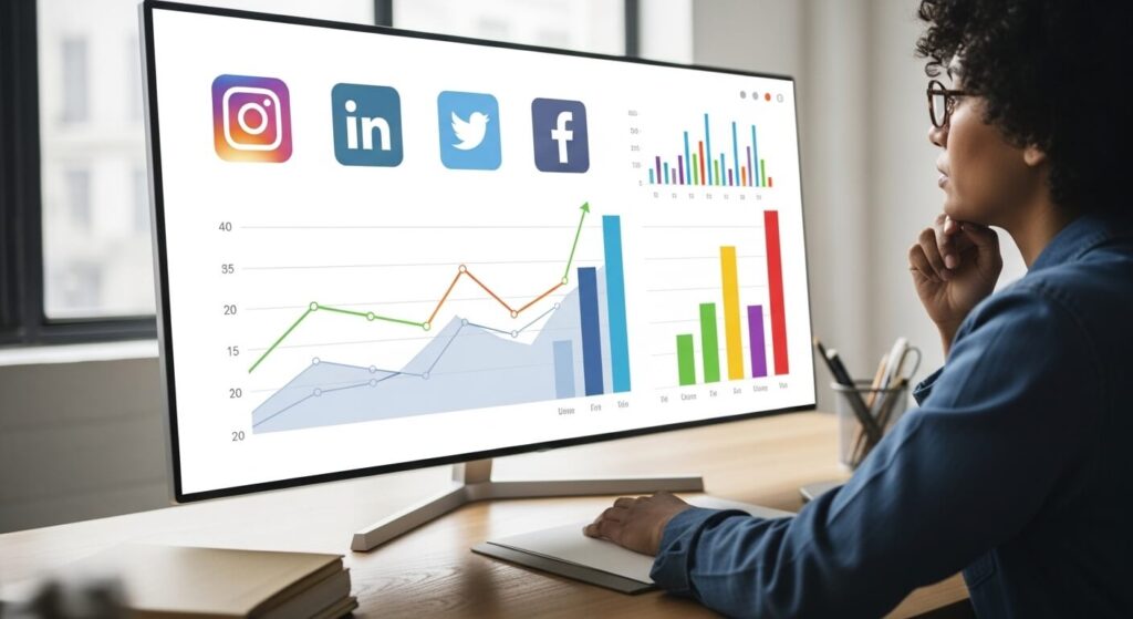 O que não é medido não pode ser melhorado. Utilize as ferramentas de análise das próprias plataformas (como o Instagram Insights) e o Google Analytics para monitorar suas métricas. Acompanhe indicadores como: